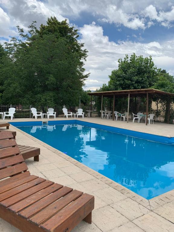 Cabañas Bosques del Centro, con una impresionante puntuación de 9,9, ofrece un alojamiento acogedor en Mina Clavero, a pocos pasos del centro. Dispone de piscina al aire libre, WiFi y parking gratuitos, además de zona de barbacoa y terraza solárium. Sus cabañas cuentan con cocina equipada, TV y baño privado, ideales para familias o parejas que buscan confort y tranquilidad.